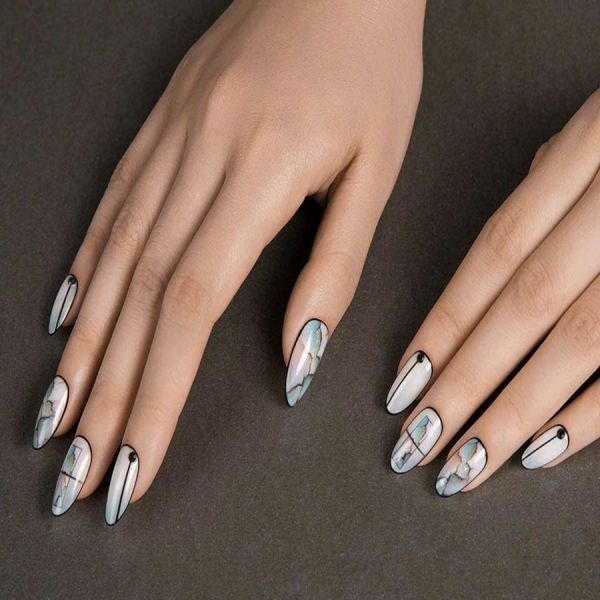 Lấy cảm hứng từ vẻ đẹp tinh xảo của xà cừ, “Nail box Khảm Xà Cừ” mang đến một bộ móng lung linh với hiệu ứng ánh sáng đổi màu độc đáo. Sắc trắng ngọc trai kết hợp cùng ánh hồng, tím và xanh lam tạo nên một diện mạo thanh tao, sang trọng nhưng vẫn hiện đại.